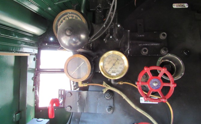 Der Arbeitsplatz des Lokführers ist höchst detailliert nach gebildet. Alle Instrumente sind sind vorbildgerecht nachgebildet, alle Bedienelemente wie Handräder, Hebel und Ähnliches entsprechen exakt dem Vorbild. Die Flammen in der Feuerbüchse sind durch das per LED nachgestellte Revisionsglas sichtbar. Auch am Boden der Feuerbüchse blitzt das Feuer wie beim Vorbild von Zeit zu Zeit durch.
