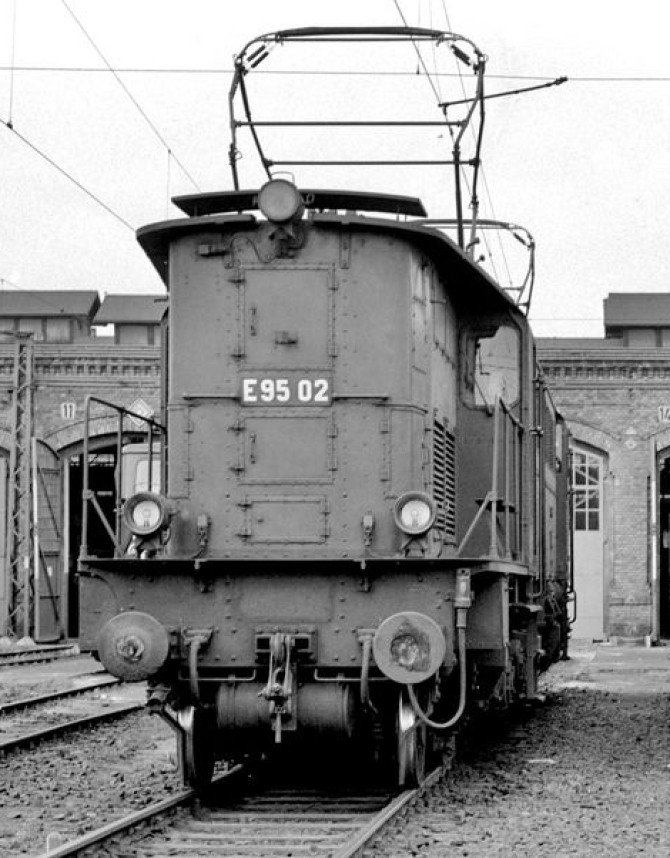 Die E 95 02 blieb bis heute erhalten. Hier steht Sie im Jahr 1968 Halle (Saale). Copyright: Manfrad Elster/Slg. Eisenbahnstiftung