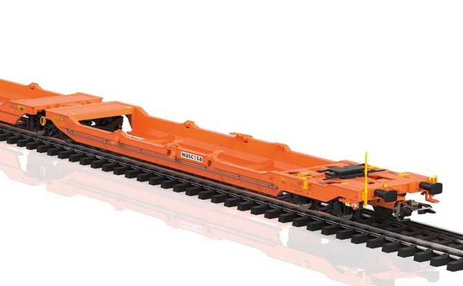 • Art. 47472 ein Wagen der MFD Rail GmbH der Bauart "Kolowag" mit geschwungenen Seitenrahmen. Auch diese Bauart besitzt je vier seitliche Klappriegel je Wagenhälfte und Seite. Der Übergang dieses Wagens ist durch eine kleinere, hoch gesetzt Abdeckung geschützt. Dieser Wagen ist mit zwei LKW-Aufliegern der Firma MARS Logistics beladen (Herpa Modelle).