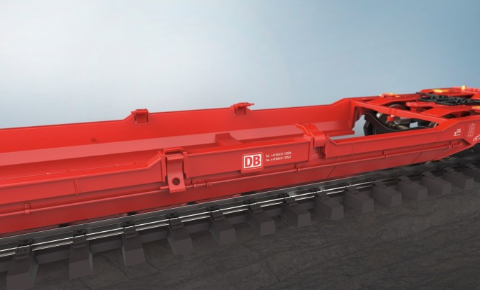 Ein Wagen der DB AG mit den unternehmenseigenen Aufliegern von DB Schenker. Copyright: J.Franke